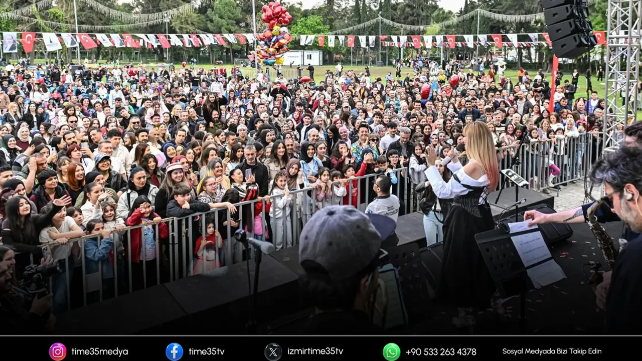 İzmir’de 23 Nisan Ulusal Egemenlik ve Çocuk Bayramı, sabahın erken saatlerinden akşam saatlerine kadar büyük bir coşku ve yoğun katılımla kutlandı. İzmir Büyükşehir Belediyesi’nin Kültürpark’ta düzenlediği etkinlikler, gün boyunca çocuklar ve ailelerden büyük ilgi gördü. Kutlamaların son programında sahne alan pop müziğin sevilen ve renkli ismi Gökçe, özellikle çocuklar ve ailelerin yoğun ilgisiyle karşılandı. Sanatçı, konsere, sevilen şarkısı “Tuttu Fırlattı Kalbimi” ile başladı; alanı dolduran binlerce kişi şarkıya hep bir ağızdan eşlik etti. Yaklaşık bir buçuk saat sahnede kalan Gökçe, “Napardım Bilmem” gibi hit parçalarının yanı sıra hareketli repertuvarıyla dinleyicilere yüksek tempolu bir konser yaşattı. Gökçe, enerjisi ve sahne performansının yanı sıra izleyiciyle kurduğu güçlü iletişimle dikkat çekti. Her yaştan müzikseverin yoğun ilgi gösterdiği konser, “Parla” ile sona erdi.