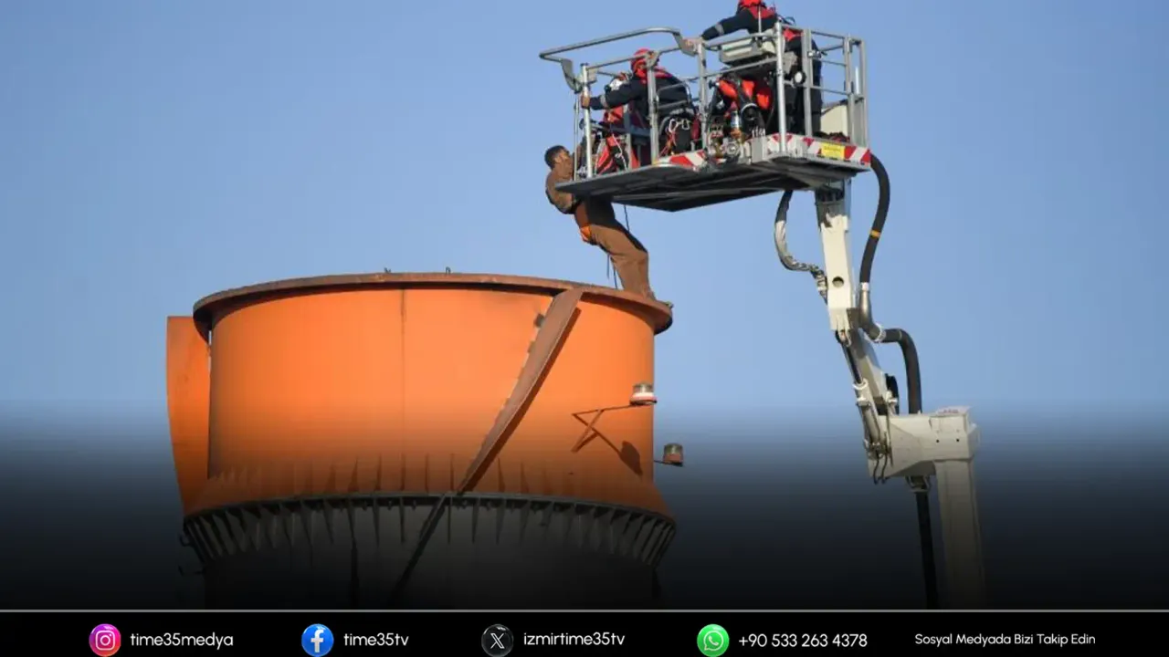İzmir'in Bornova ilçesinde temizlik için çıktıkları fabrika bacasında iskelenin çökmesi sonucu mahsur kalan 2 işçi, 4 saatlik operasyonla kurtarıldı.