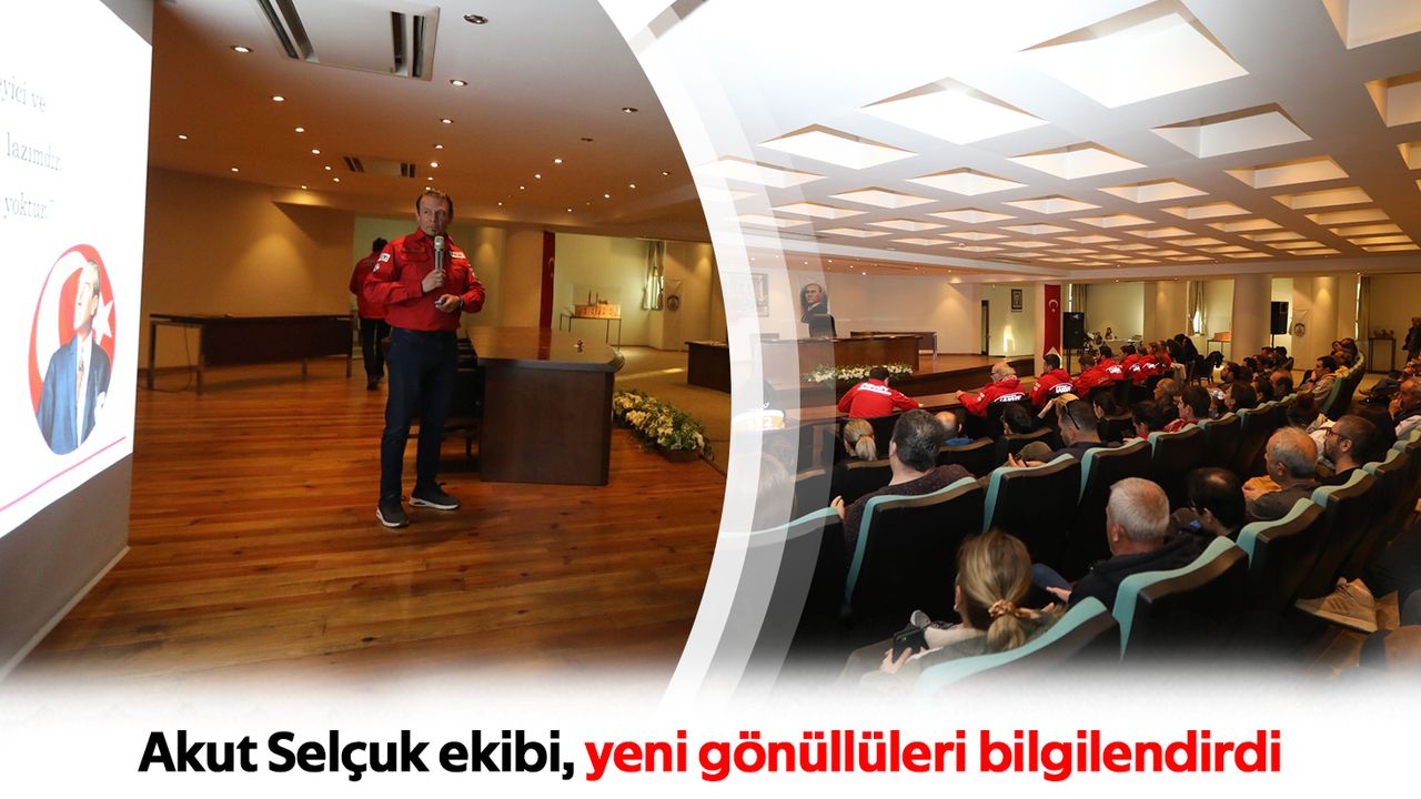 AKUT Selçuk Ekip Lideri Dr. Tunç Tuncer gönüllülere yönelik bilgilendirme toplantısında AKUT’UN gönüllülük, karşılıksız yardımseverlik, başta insan olmak üzere tüm canlıların hayatına değer vermek, dürüstlük ve güvenilirlik temel değerleriyle çalıştığının da altını çizdi.