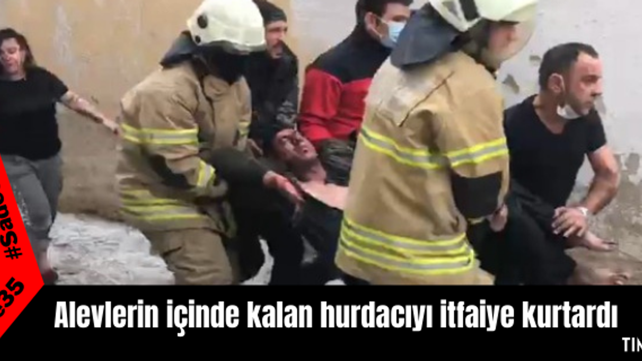Alevlerin içinde kalan hurdacıyı itfaiye kurtardı