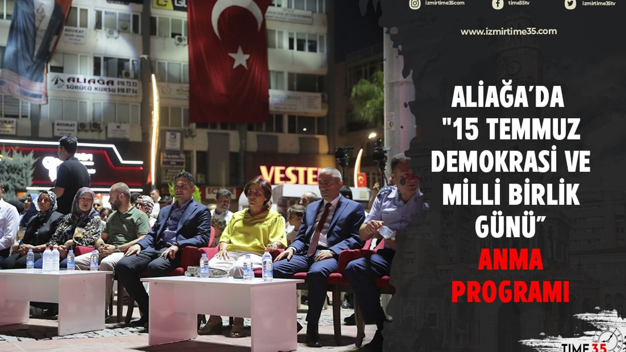 Aliağa Kabristanlığında şehitlik ziyareti ve Çarşı Camisi'nde mevlit okutulmasıyla başlayan anma programı, akşam saatlerinde Demokrasi Meydanı'nda gerçekleştirilen etkinliklerle devam etti. Aliağa Kaymakamlığı tarafından organize edilen anma programına, Aliağa Kaymakamı Zekeriya Güney, Aliağa Belediye Başkanı Serkan Acar, Garnizon Komutanı Albay Faruk Altun, Aliağa Cumhuriyet Başsavcısı Mehmet İmir, şehit yakınları, gaziler, daire amirleri, belediye meclis üyeleri, siyasi parti üyeleri ile vatandaşlar katıldı.