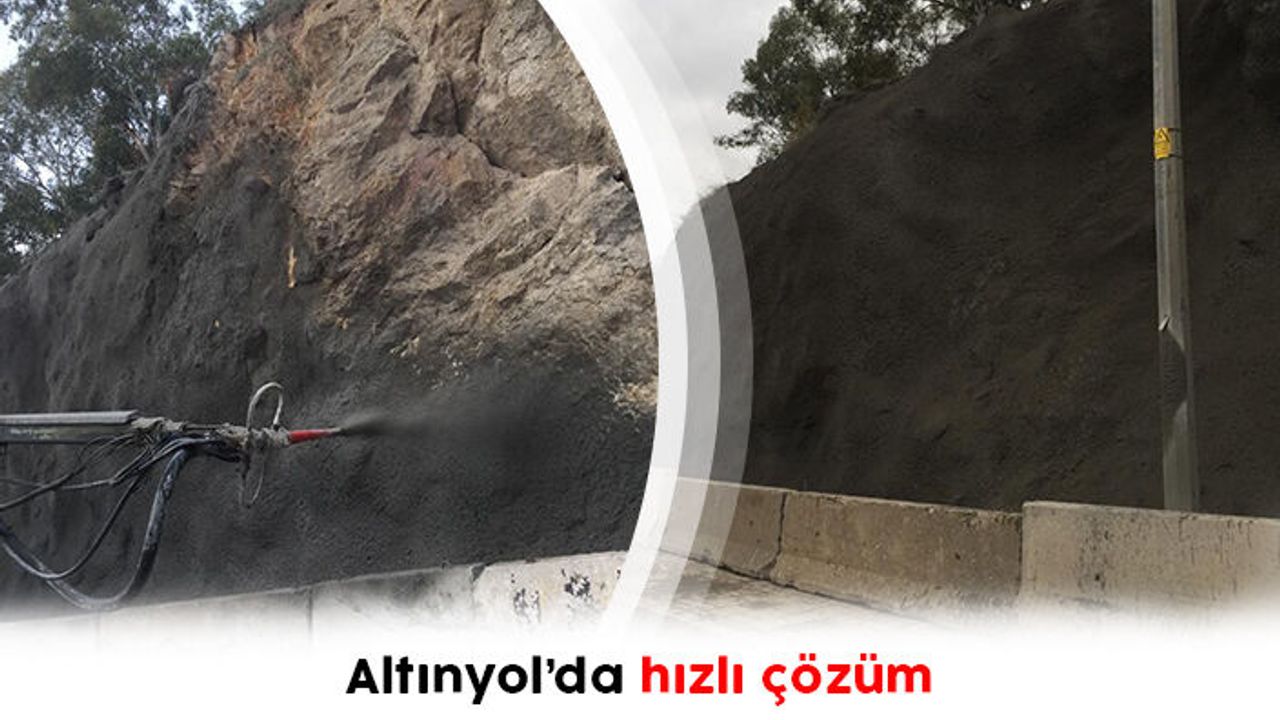 Olası bir kaya yuvarlanmasının önüne geçmek için kaya yüzeylerini betonla kapladı. Püskürtme beton tekniğiyle yapılan çalışma sonrasında Altınyol’un güvenliği sağlanmış oldu.