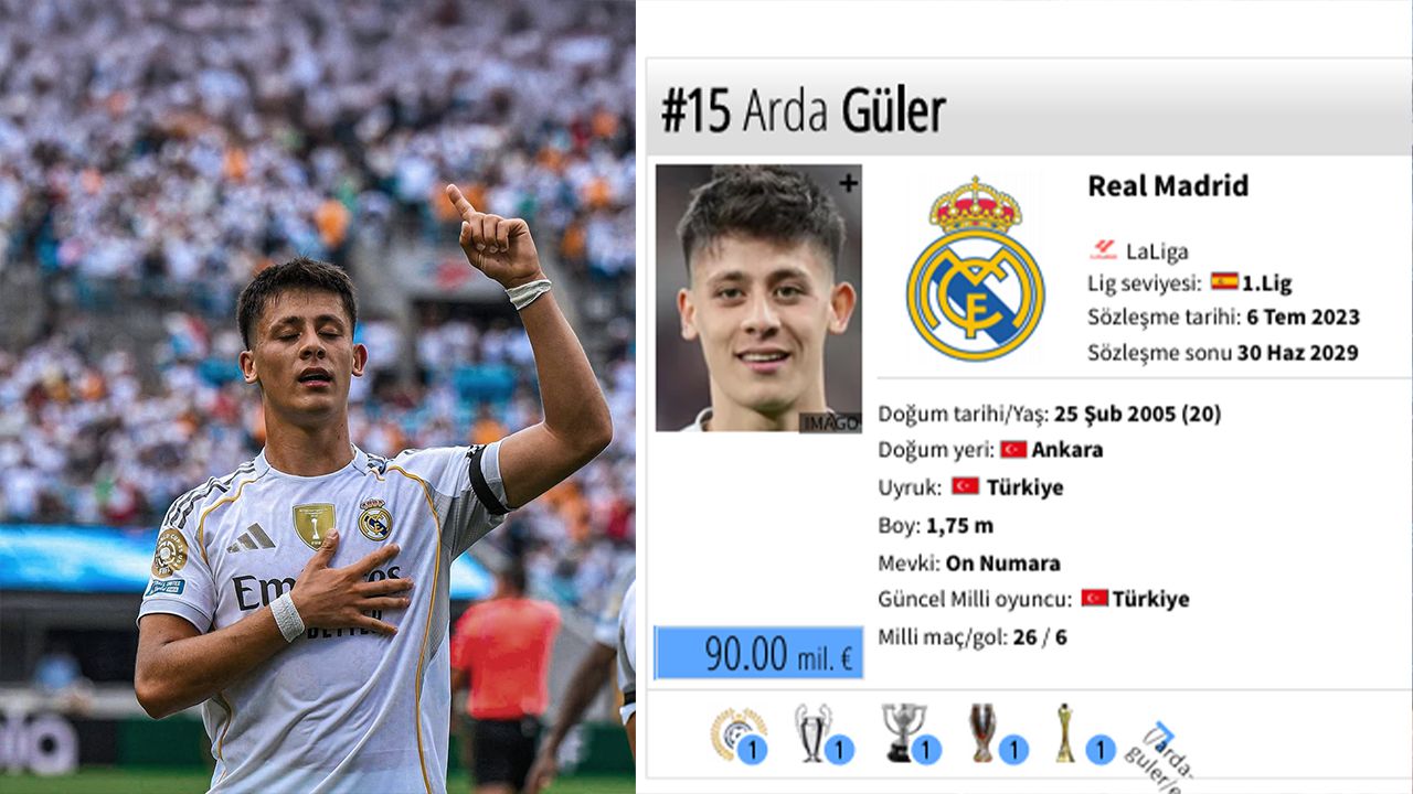 Real Madrid’in genç yıldızı Arda Güler, Avrupa futbol piyasasında değerini katlamaya devam ediyor. Almanya merkezli uluslararası futbol veri sitesi Transfermarkt, milli futbolcumuzun piyasa değerini güncelledi.