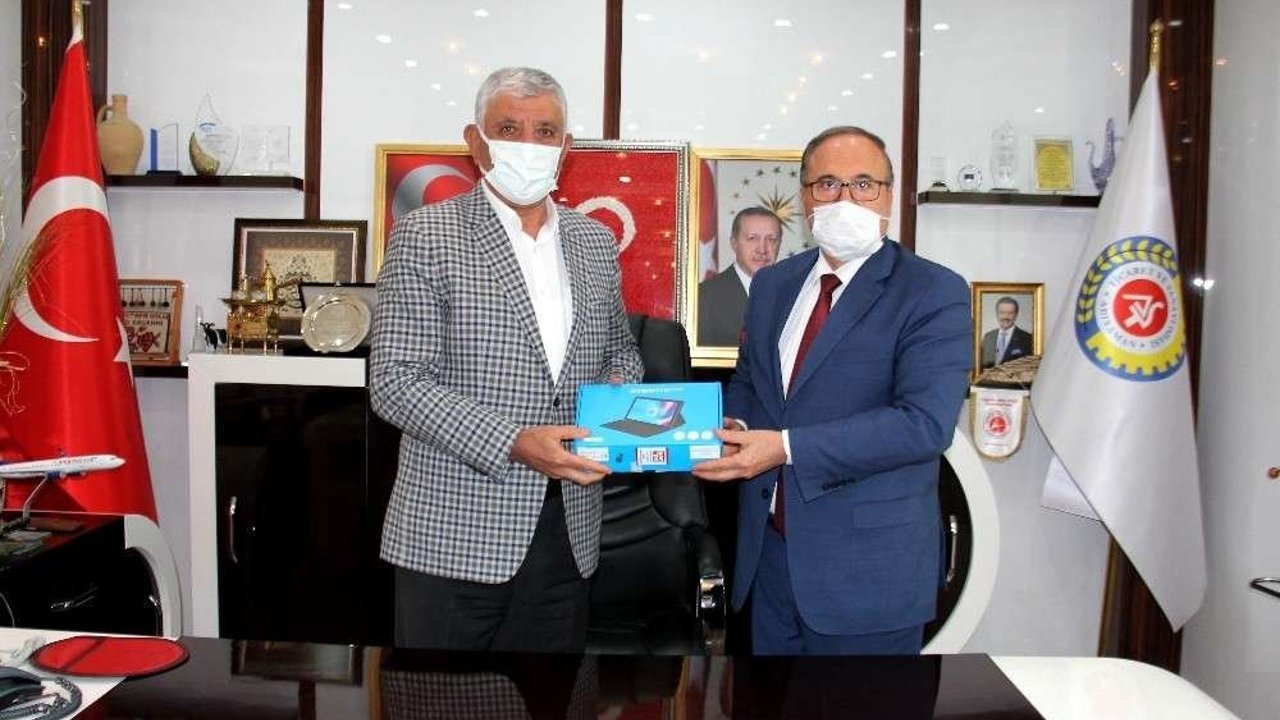 Adıyaman Ticaret ve Sanayi Odası Başkanı Mustafa Uslu, Milli Eğitim Müdürü Ahmet Alagöz’e tabletleri teslim etti.