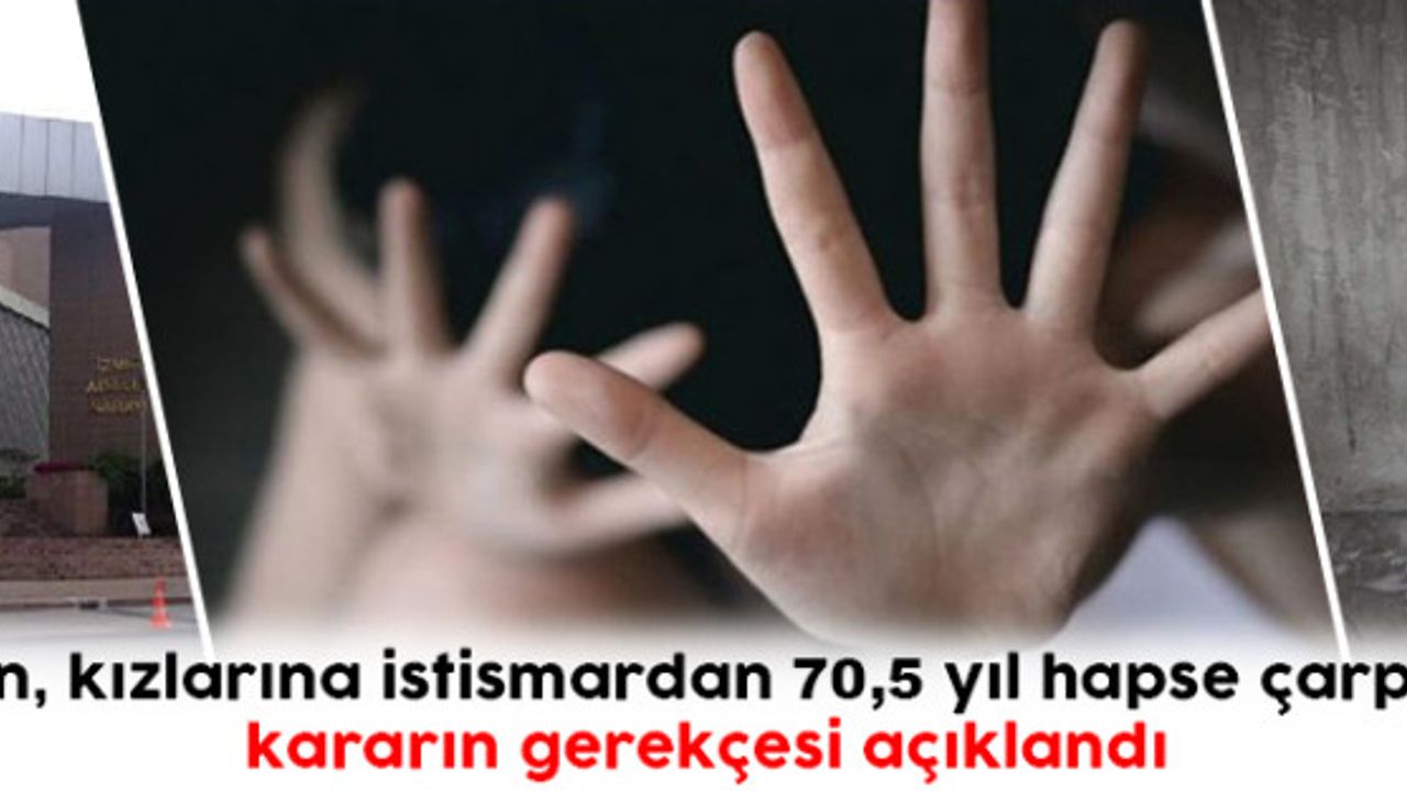 İzmir'de kızları N.B. (15) ile N.B.'ye (19) cinsel istismarda bulunduğu suçlamasıyla yargılanan ve indirimsiz olarak 70,5 yıl hapis cezasına çarptırılan R.B. (39) hakkında gerekçeli karar yazıldı.