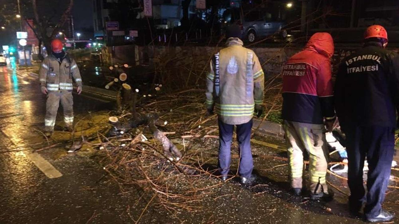 Kadıköy Bağdat Caddesi’nde sabahın erken saatlerinde aşırı yağmur ve rüzgar nedeniyle bir ağaç yolun ortasına devrildi. Şans eseri herhangi bir otomobilin üzerine düşmeyen ağaç, itfaiye ekipleri tarafından kesilerek yoldan kaldırıldı.