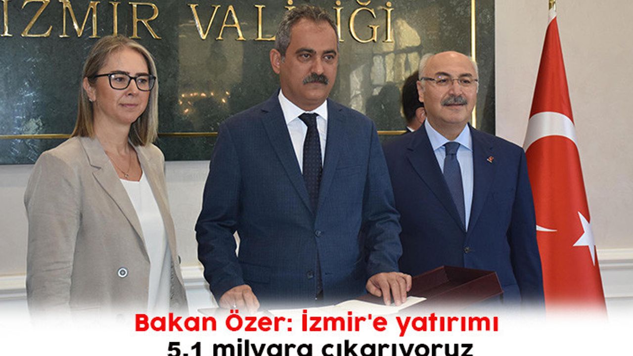 Milli Eğitim Bakanı Mahmut Özer, bir dizi program gerçekleştirmek amacıyla geldiği İzmir'de Vali Yavuz Selim Köşger'i makamında ziyaret etti. Valilik Şeref Defteri'ni imzalayan Bakan Özer, daha sonra Vali Köşger, İl Milli Eğitim Müdürü Murat Mücahit Yentur, AK Parti İzmir Milletvekili Ceyda Bölünmez Çankırı ve bakanlık bürokratlarının da yer aldığı toplantıya katıldı. Toplantı sonrası açıklama yapan Bakan Özer, "Yaklaşık 2,1 milyarlık yatırımı İzmir'e kazandırmıştık. Bugün İzmir'e 3 milyarlık ilave yatırım vererek, 2,1 milyarlık yatırımı 5,1 milyara çıkarmış oluyoruz. İnşallah inanıyorum ki İzmirimiz'de Sayın Valimizin koordinasyonunda yatırımlar hızlı bir şekilde gerçekleşecek. 2022 yılı bitmeden 5,1 milyarlık yatırımı daha yüksek rakamlara çıkarma imkanımız olacak. En önem verdiğimiz konulardan birisi güçlendirme. İzmir bu bağlamda en mağdur illerimizden biriydi. İzmir'deki güçlendirme çalışmaları devam ediyor. Mevcut yapıların güçlenmesiyle daha dayanıklı ve güvenli eğitim ortamının sağlanması bağlamında 2022 yılına gerçekten çok verimli başladık. İnşallah bugünden itibaren 6-7 ay içerisinde tüm mevcut güçlendirmeleri nihayete erdirmek istiyoruz" diye konuştu.