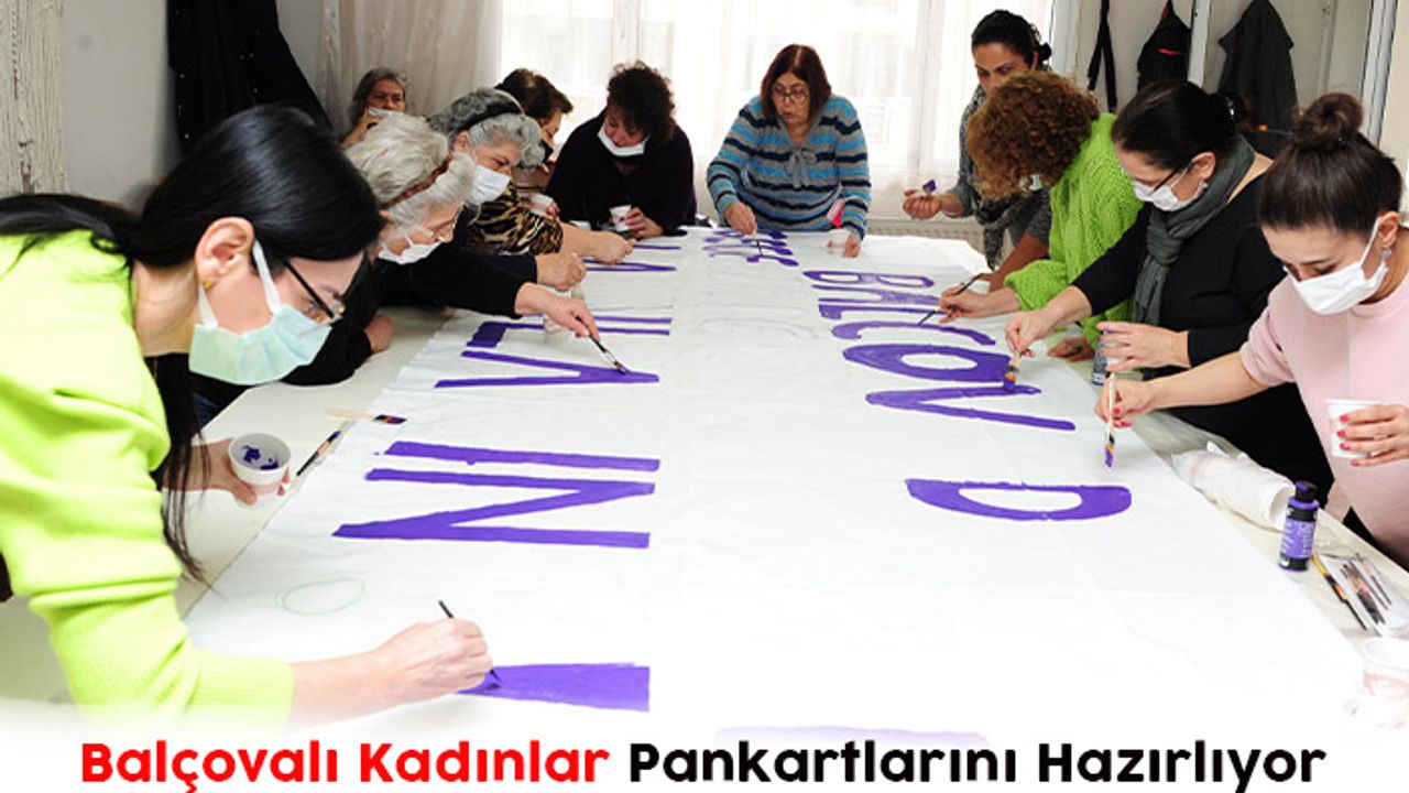 8 Mart Dünya Kadınlar Gününde “Gece Kadın Yürüyüşü” düzenleyecek olan Balçova Belediyesi hazırlıklarına devam ederken Balçovalı Kadınlar da yürüyüşte taşıyacakları pankartları hazırlıyorlar.