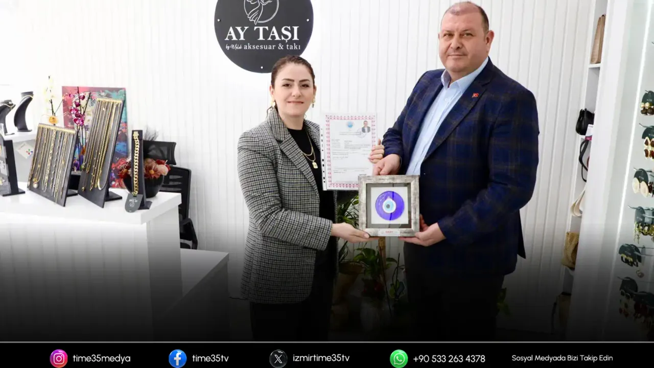 Menderes Belediye Başkanı İlkay Çiçek’in eşi Melek Çiçek’in Menderes’e kazandırdığı Ay Taşı Aksesuar ve Takı işletmesinin ruhsatını Başkan Çiçek kendisi teslim etti. Yapılan sürpriz ziyarette işyeri ruhsatını eşine veren Başkan Çiçek’in sürprizi eşi Melek Çiçek tarafından mutlulukla karşılandı.