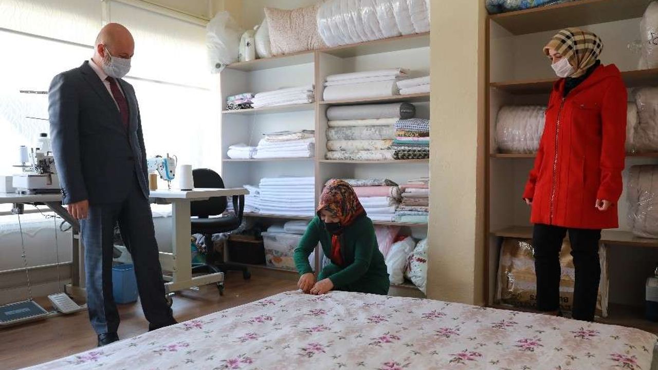İŞKUR İl Müdürü Ayşe Ak ile birlikte Mevlana Mahallesi’nde Türkiye İş Kurumu (İŞKUR) tarafından verilen hibe desteğiyle kendi işini kuran Süreyya Yüncü’yü ziyaret eden Başkan Çolakbayrakdar, onunla sohbet etti.