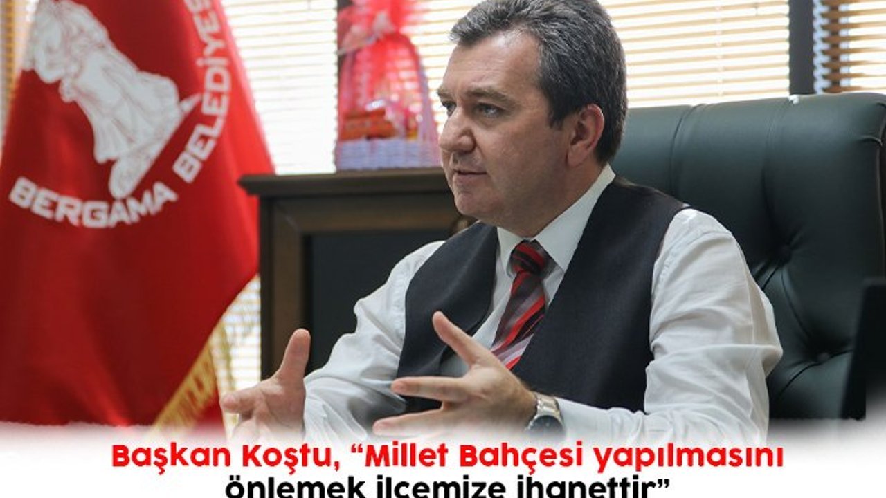 UNESCO Dünya Mirası Bergama’da 7’den 70’e herkesin sosyalleşmesi, çocukların şık ve modern oyun gruplarında güle oynaya büyümesi için projelendirilen, belediye bütçesinin üstünde bir yatırım olan (Arsa 100 milyon+Proje 80 milyon Toplam 180 milyon lira) değerindeki Millet Bahçesi’nin yapımının engellenmesine Bergama Belediye Başkanı Hakan Koştu’dan sert bir tepki geldi. Başkan Koştu, “Millet Bahçesi’nin yapımını engellemek ilçemize ihanettir” dedi.