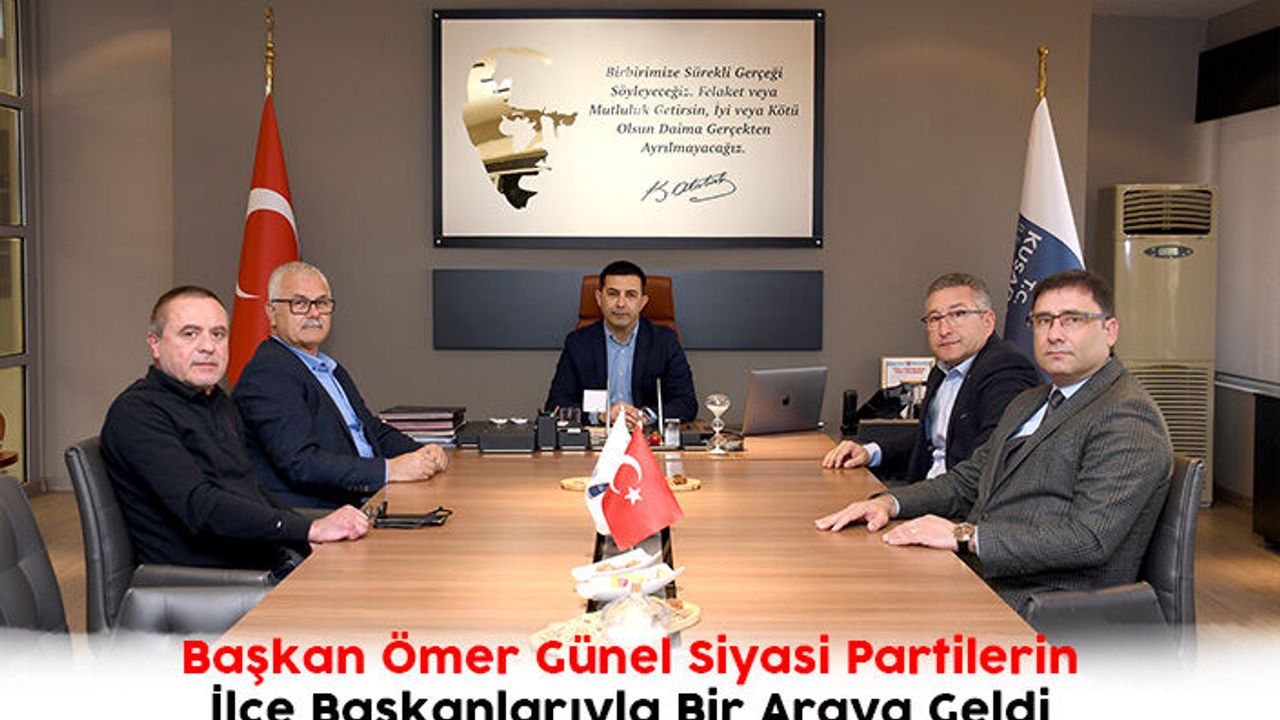 Göreve geldiği günden bu yana Kuşadası’nın çehresini değiştirecek projelerle ilgili her kesimle yakın temas kuran Belediye Başkanı Ömer Günel, belediye meclisinde yer alan siyasi partilerin ilçe başkanlarıyla buluştu. Başkanlık makamında gerçekleşen görüşmeye CHP Kuşadası İlçe Başkanı Mehmet Gürbilek, İyi Parti Kuşadası İlçe Başkanı Hayati Atlı, AKP Kuşadası İlçe Başkanı Mustafa Gökçe ve MHP Kuşadası İlçe Başkanı Murat İnan katıldı.