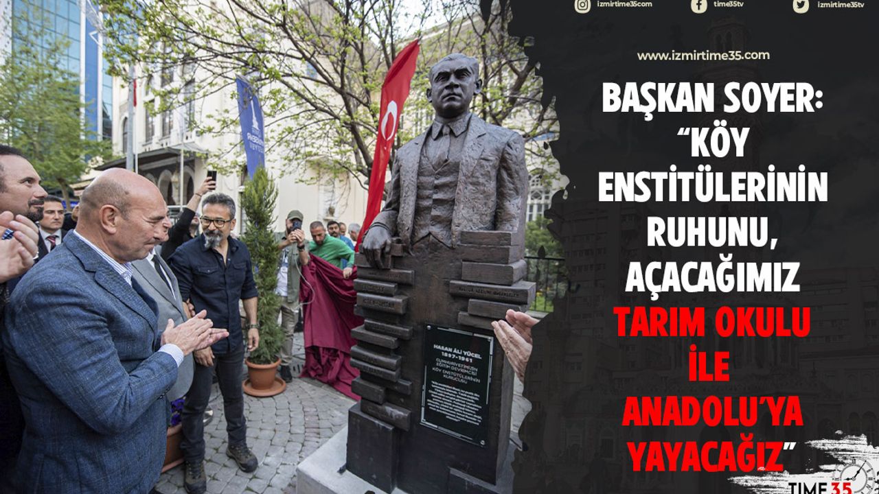 Panelin ardından Başkan Tunç Soyer, Milli Kütüphane Vakfı binasının önünde İzmir Büyükşehir Belediyesi Kültür ve Sanat Şube Müdürlüğü Plastik Sanatlar Şefliği heykeltıraşlarından Yücel Tonguç Sercan tarafından tasarlanan Hasan Ali Yücel heykelinin açılışını yaptı. Açılışta konuşan Başkan Soyer, “Köy Enstitüleri, Türkiye Cumhuriyeti tarihinde Anadolu’nun aydınlanması için son derece önemli bir adımdı. Bize ‘neden heykel yapıyorsunuz’ diye kimi zaman eleştiri geliyor. Öyle bir hız çağında yaşıyoruz ki, bu hız çağı bize köklerimizi, geçmişimizi unutturuyor maalesef. Anadolu’nun aydınlanma hareketi olan Köy Enstitüleri’nin kapatılması belki de bu toprakların en büyük talihsizliklerinden birisi” diye konuştu.