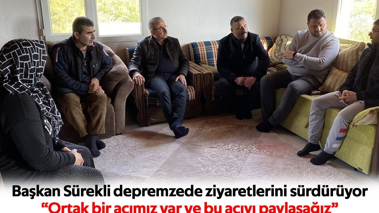 Daha sonra Selçuk ilçesine geçen Başkan Sürekli, yakınlarının evlerinde kalan depremzede aileleri ziyaret edip baş sağlığı ve geçmiş olsun dileklerini iletti. Ege Üniversitesi Tıp Fakültesi Hastanesinde tedavileri devam eden yaralı depremzedeleri de ziyaret eden Başkan Sürekli, İzmir ve ilçelerindeki depremzedelerin durumlarını takip ettiklerini belirtti. Başkan Sürekli, “Deprem bölgesinden İzmir’imize gelen depremzedelerimizi bir an olsun yalnız bırakmıyoruz, bırakmayacağız da. Milletimiz devletimizle el ele verip eşsiz bir dayanışma örneği gösteriyor. Tüm teşkilatlarımız sahada. Hiçbirini atlamadan, şehrimize gelen tüm depremzede kardeşlerimizin yanındayız. Her birini tek tek ziyaret ediyoruz” dedi.