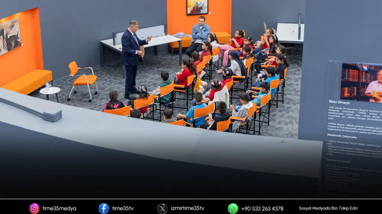 İzmir Büyükşehir Belediye Başkanı Dr. Cemil Tugay, Kültürpark’ta hizmete açılan İlber Ortaylı Kütüphanesi’nde ilkokul öğrencileri ile bir araya gelerek onlara kitap okuyor. Çocuklara olan sevgisi ile tanınan Başkan Tugay, onlarla sohbet etmekten de büyük keyif alıyor. Geçtiğimiz günlerde Konak Vali Kazım Paşa İlköğretim Okulu ikinci sınıf öğrencilerine babasının küçük yaşlarda hediye ettiği Ömer Seyfettin’in Kaşağı hikayesini okuyan Başkan Tugay, bu haftada da Sosyal Hizmetler Dairesi Başkanlığı Eğitim Destekleri Şube Müdürlüğü tarafından gerçekleştirilen Okul Aile Birliklerine Destek Projesi kapsamında Kadifekale bölgesinde yer alan bir ilkokulun 4. sınıf öğrencileri ile bir araya geldi. Buluşma öncesinde Kültürpark’ı gezen çocuklar, ardından İlber Ortaylı Kütüphanesi’nde Başkan amcalarından Ömer Seyfettin’in Perili Köşk hikâyesini dinledi. Çocuklarla kent hakkında sohbet eden Başkan Tugay, okuduğu hikâye hakkında da onlarla fikir alışverişinde bulundu.