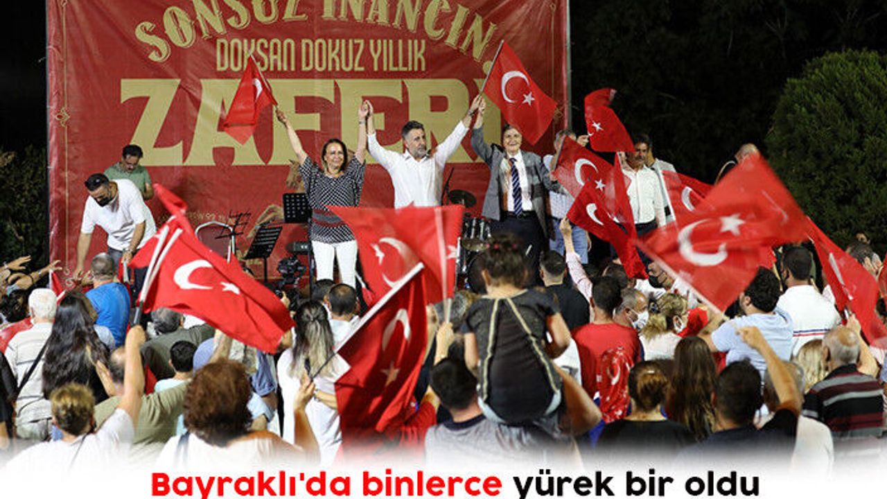Bayraklı Belediye Başkanı Serdar Sandal’ın konuşmasının ardından 30 Ağustos Zafer Bayramı etkinlikleri tüm Bayraklıların coşkuyla söyledikleri marşlarla son buldu.