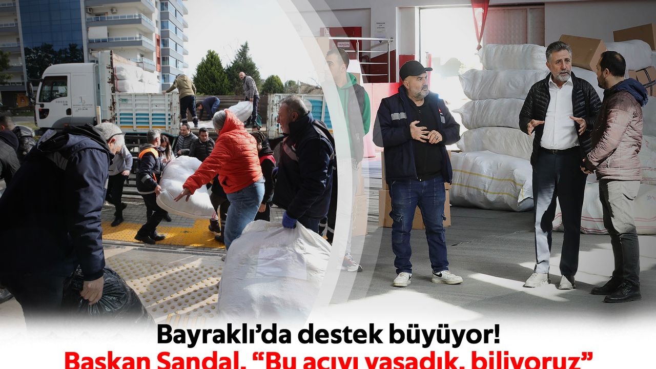 Bayraklı Belediyesi'nin, Türkiye’yi sarsan deprem felaketi sonrası başlattığı yardım kampanyası çığ gibi büyüdü. Binlerce sağduyulu vatandaş, temel ihtiyaç malzemeleri göndererek dayanışma ağına destek oldu. Dün 4 tır dolusu yardım malzemesini İBB Koordinasyon Merkezi’ne ileten belediye ekipleri, her geçen saniye artan destekleri de deprem bölgesine gönderecek.
