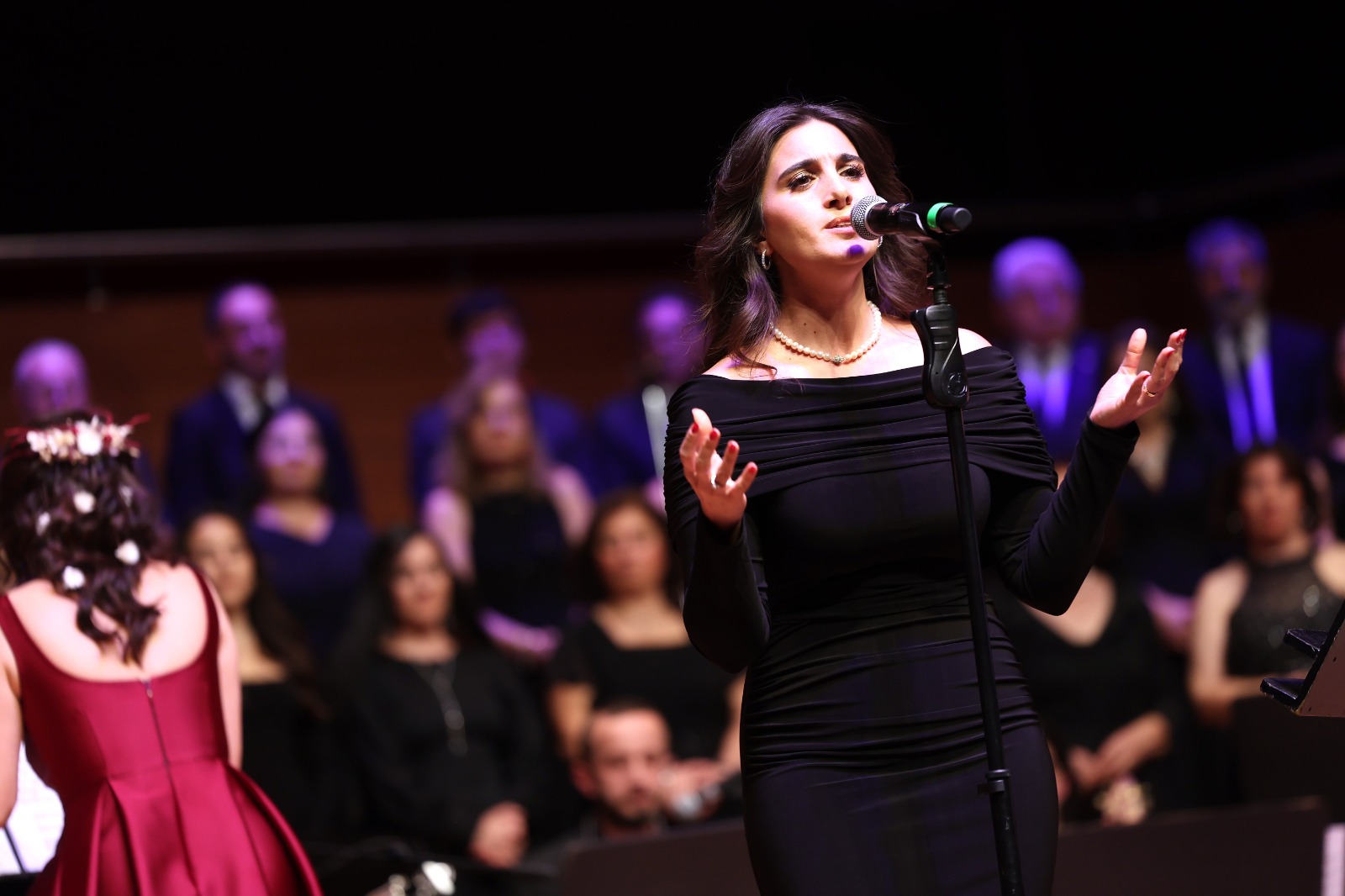 Türk Halk Müziği’nin efsane ismi 84 yaşındaki Bedia Akartürk, İzmir Büyükşehir Belediyesi Türk Halk Müziği Korosu’nun Ahmed Adnan Saygun Sanat Merkezi'nde (AASSM) verdiği konserde konuklara sürpriz yaptı. Efsane isim, koronun seslendirdiği türkülere eşlik ederek İzmirlilere unutulmaz bir gece yaşattı.
