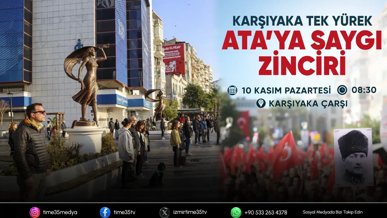 Türkiye Cumhuriyeti’nin Kurucusu Gazi Mustafa Kemal Atatürk, 10 Kasım’da Karşıyaka’da anlamlı bir etkinlikle anılacak. Karşıyaka Belediyesi tarafından düzenlenen organizasyonla, Karşıyaka Çarşısı’ndan başlayarak dev bir “Ata’ya Saygı Zinciri” oluşturulacak. Saat 08.30 bir araya gelmeye başlayacak vatandaşlar, saat 09.05’i gösterdiğinde el ele verip Atatürk için saygı duruşuna geçecek. Tüm kentte hayatın duracağı anlarda 7’den 77’ye binlerce Karşıyakalı tek yürek olacak; Ulu Önder Atatürk’ü sonsuz saygı, sevgi ve minnetle anacak. Saat 09.30’da da Zübeyde Hanım Anıt Mezarı’nda tören düzenlenecek.