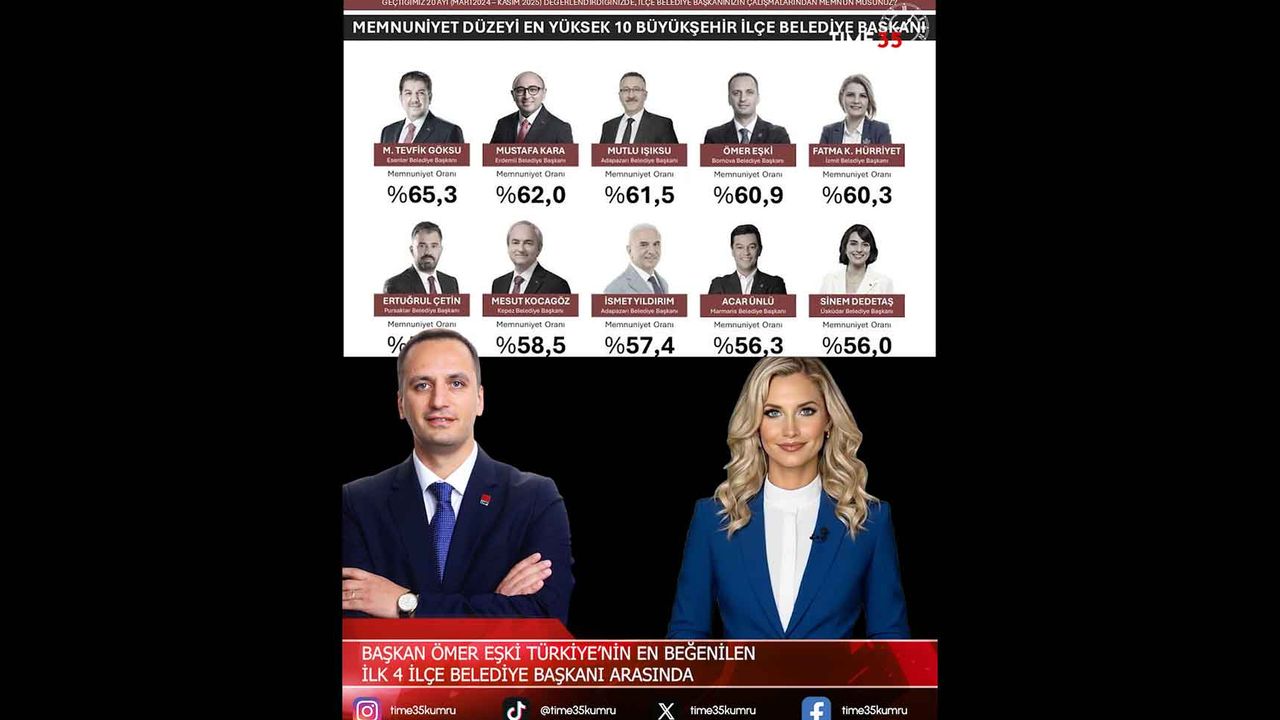 MLS Araştırma’nın çalışmasına göre memnuniyet düzeyi en yüksek büyükşehir ilçe belediye başkanları sırasıyla şöyle: