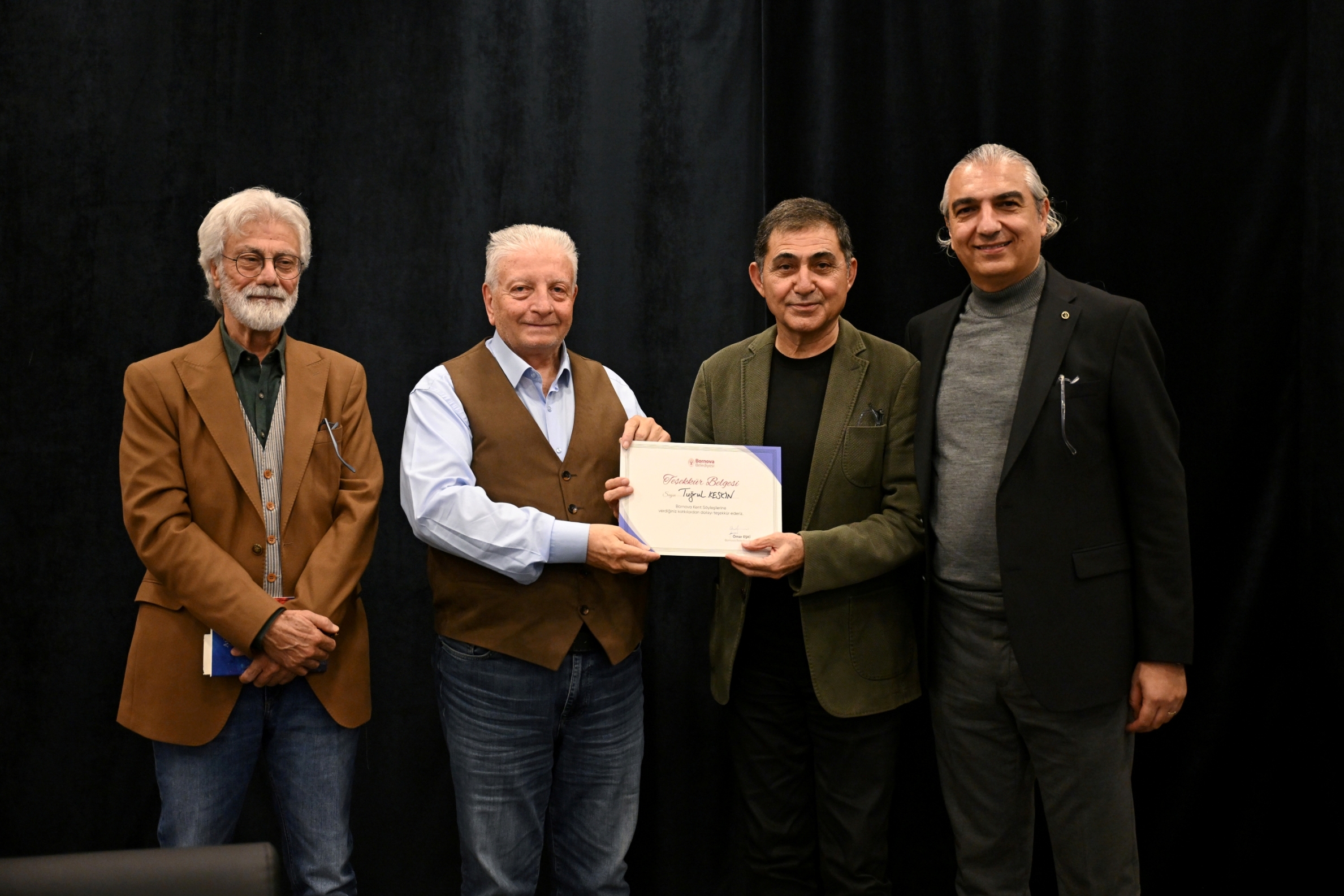 Etkinlik sonunda teşekkür belgesini İzmir Gazeteciler Cemiyeti (İGC) Yönetim Kurulu Üyesi Esat Erçetingöz takdim etti. Gecenin sürprizlerinden biri ise ünlü kanun virtüözü Namık Sağlam’ın mini konseri oldu. Sağlam’ın performansı, söyleşiye unutulmaz bir müzikal tat kattı.