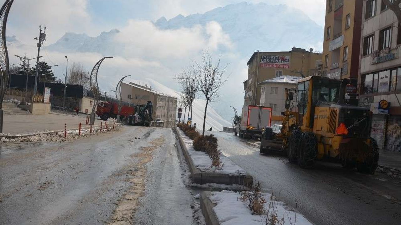 Hakkari’de sokağa çıkma kısıtlamasının başlamasının ardından cadde ve sokaklarda sessizliğe bürünürken belediye ekipleri ise karla mücadele çalışması başlattı.