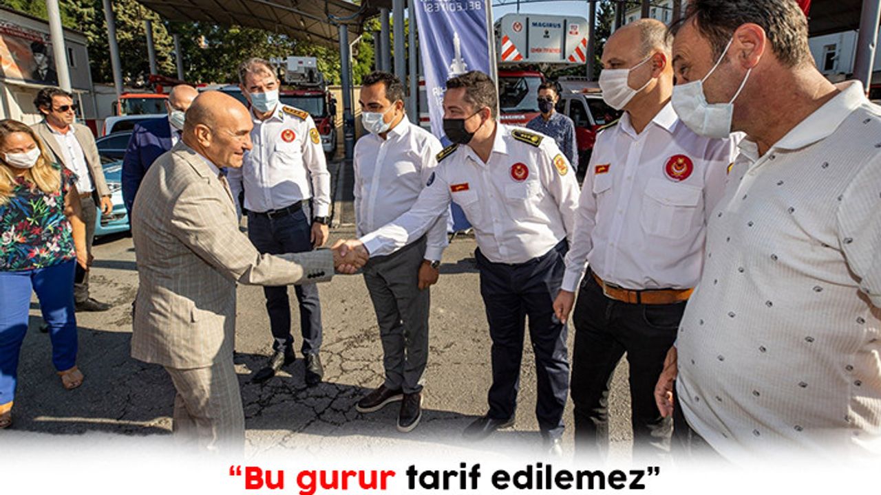 Tüm personelle ayrı ayrı iftihar ettiğini söyleyen Başkan Tunç Soyer, “Siz yangın bölgesinden döndüğünüzden beri ben teşekkür telefonlarına yetişemiyorum. Gittiğiniz bölgelerdeki küçük ilçelerin belediye başkanları, muhtarları arayıp teşekkür ediyorlar bana. Bu gurur tarif edilemez” diye konuştu.