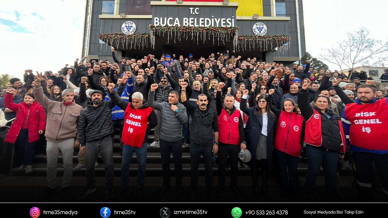 Buca Belediyesi'nde görev yapan işçiler, kasım ayı maaş ödemelerinin yapılmadığı gerekçesiyle eyleme başladı. Disk Genel-İş İzmir 6 No'lu Şube Yönetim Kurulu üyeleri ve çalışanlar Buca Belediyesi önünde basın açıklaması yaptı.