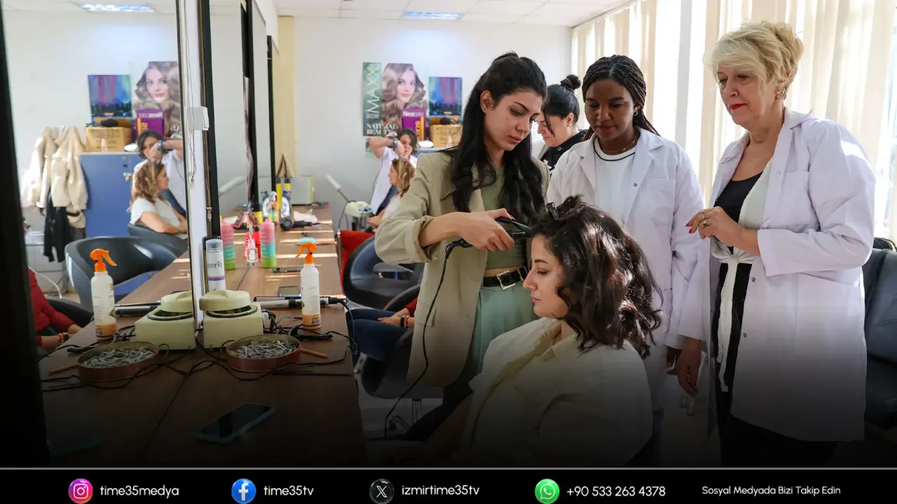 Kadınların ekonomik hayata kazandırılması için projeler üreten Buca Belediyesi’nin açtığı meslek edindirme kursları büyük ilgi görüyor. Bu kapsamda Buca Halk Eğitimi Merkezi Müdürlüğü ile ortaklaşa Evka-1 ve Ceren Özdemir semt evlerinde açılan kuaförlük kursları, Bucalı kadınlara ekonomik hayatta yeni fırsatlar sunuyor. Alanında uzman eğitmenler eşliğinde verilen kurslarda; saç kesimi, renklendirme, makyaj, topuz, fön gibi kuaförlük mesleğinin tüm temel ve ileri teknikleri öğretiliyor.