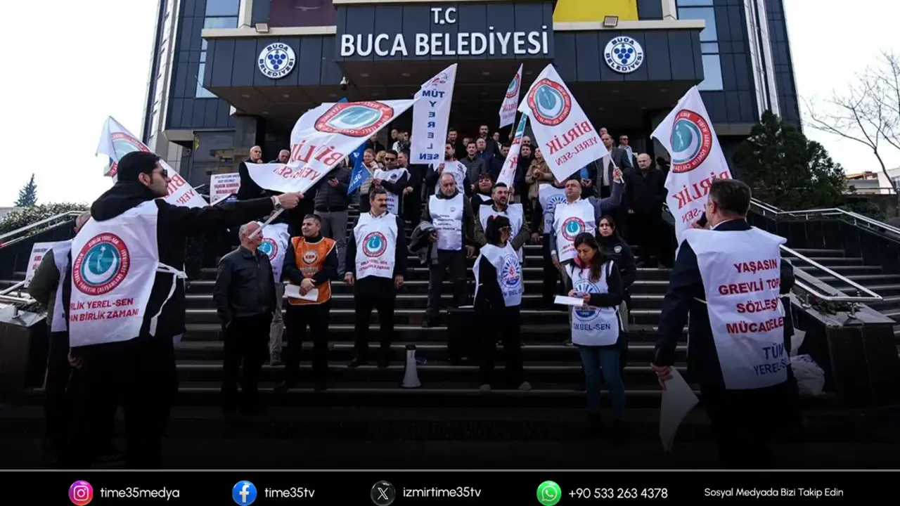 İzmir’in Buca ilçesinde belediye bünyesinde görev yapan memurlar, uzun süredir ödenmeyen hakları nedeniyle iş bırakma kararı aldı. Belediye çalışanları, 7 aydır sosyal denge tazminatlarının yatırılmadığını belirterek tam gün iş bıraktı.
