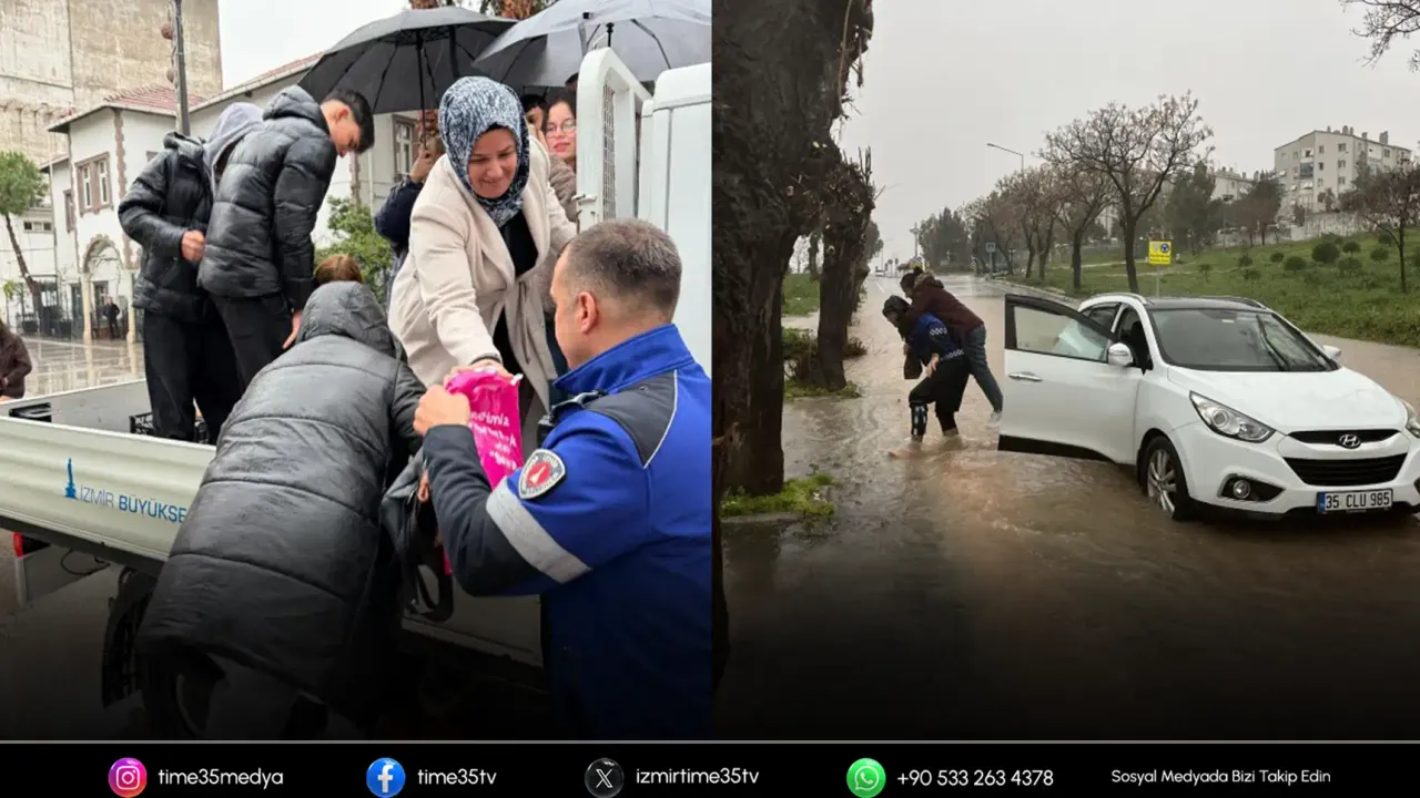 İzmir için verilen turuncu alarm ve etkili sağanak yağışlardan dolayı İzmir Büyükşehir Belediyesi Afet Koordinasyon Merkezi Şube Müdürlüğü’nde (AKOM) kurulan kriz masasıyla koordineli çalışan Zabıta Dairesi Başkanlığı’na bağlı ekipler gelen ihbarlara anında müdahale etti. Alsancak Kıbrıs Şehitleri Caddesi’nde suyla dolan alanda mahsur kalar yurttaşlar zabıta ekiplerince kurtarıldı. Vatandaşları kendi kamyonet ve hizmet araçlarıyla taşıyan ekiplerin çalışmaları sırasında yürekleri ısıtan görüntüler oluştu. Çekicilerin de sahada olduğu mesaide personel zaman zaman yurttaşları omuzlarında ve sırtında taşıdı.