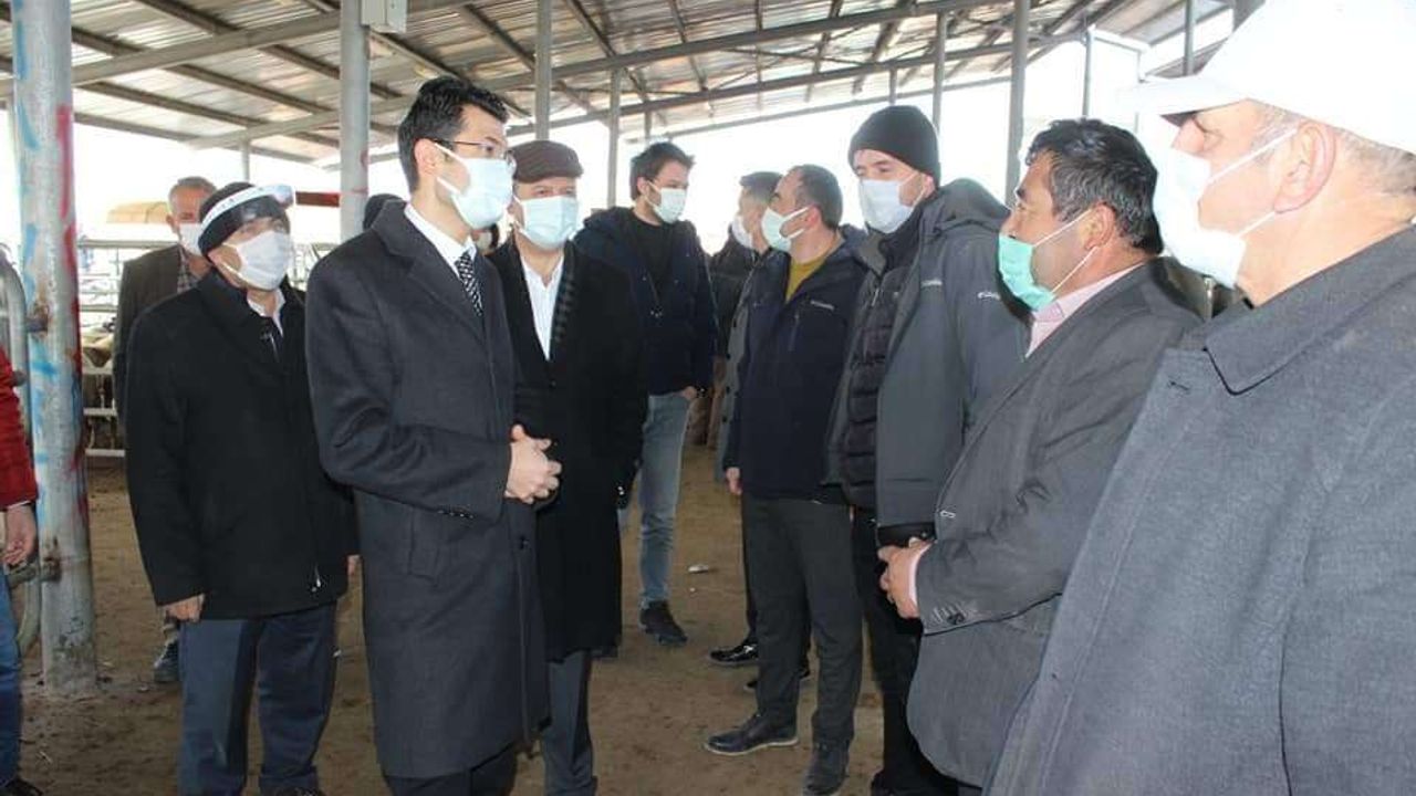 Canlı hayvan pazarında büyükbaş hayvan yetiştiricileri ve pazara müşteri olarak gelen vatandaşlar ile görüşen Kaymakam Kaçmaz ve beraberindeki protokol üyeleri korona virüs ile mücadele de alınası gereken tedbirleri anlattılar. Kaymakam Kaçmaz, pandemi sürecinde maske, mesafe ve hijyen kurallarına uyulması konusunda uyarılarda bulunuldu.