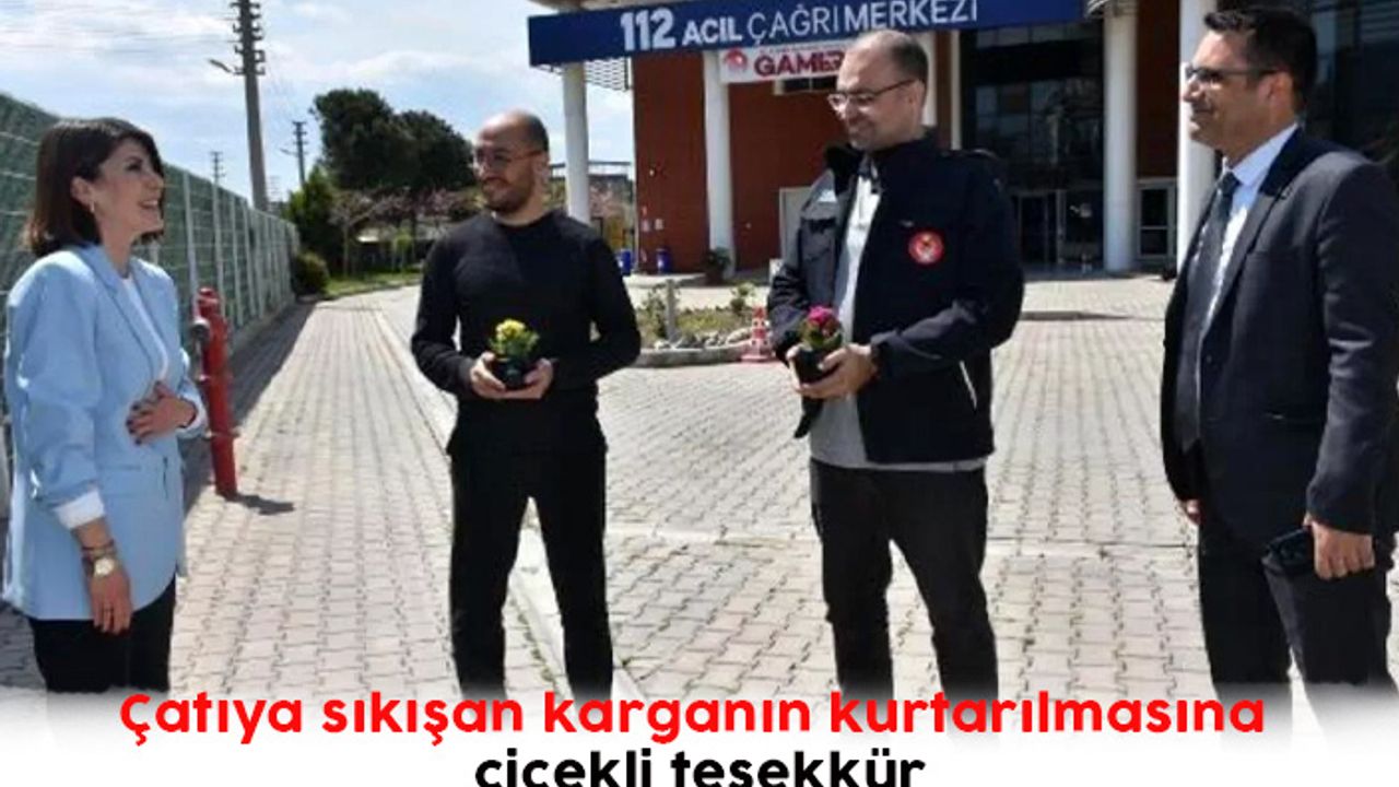 Çatıya sıkışan karganın kurtarılmasına çiçekli teşekkür