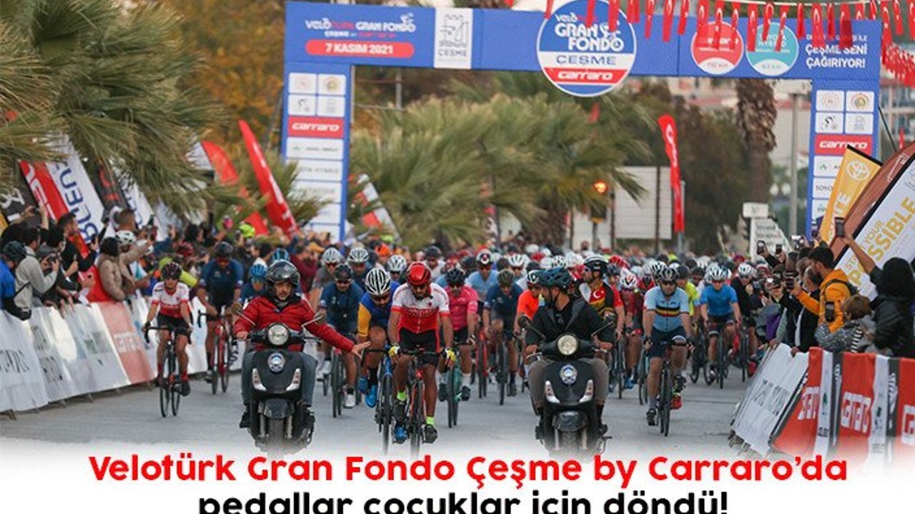 Çeşme Belediyesi’nin katkılarıyla, Argeus Travel & Event ile Velotürk iş birliğinde, Carraro’nun isim sponsorluğunda gerçekleşen Velotürk Gran Fondo Çeşme by Carraro 2021 için toplanan kayıt gelirleri, onlarca çocuğun bisiklet hayallerinin gerçek olmasını sağlayacak.