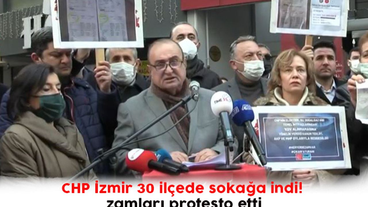 Cumhuriyet Halk Partisi (CHP) İzmir'de 30 ilçe başkanlığı eş zamanlı basın açıklaması düzenledi. Akaryakıt ürünlerine ve elektriğe gelen zamlar başta olmak üzere, tüm fahiş fiyat artışlarını protesto etmek için yapılan açıklamada, "Bu kara tabloda, halkımızın büyük bir bölümünün açlık ve yoksulluk içinde, sadece fatura ödemek için yaşadığını, aslında yaşamak yerine hayatta kalmaya çalışan bir toplum haline getirildiğini görüyoruz" vurgusu yer aldı.