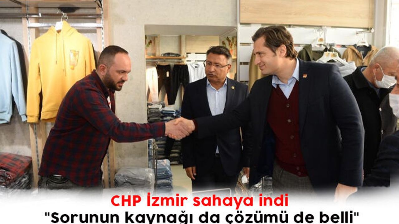 Cumhuriyet Halk Partisi İzmir İl Başkanlığı, daha önce kırsalda kesimlerde yaptığı saha çalışmalarının ardından merkez ilçelerde saha çalışmalarına başladı. Merkez ilçeler olan Konak ve Karabağlar'da başlayan saha programında İl Başkanı Deniz Yücel ve Milletvekilleri Bedri Serter, Özcan Purçu, Tacettin Bayır, Mahir Polat, Sevda Erdan Kılıç, Atila Sertel, il yöneticileri ve meclis üyeleri esnafı ziyaret etti, sorunlarını dinledi. İnönü Caddesi, Elektronik Çarşısı, Mimar Kemalettin Moda Merkesi gibi esnafın yoğun olduğu yerler ziyaret edildi.