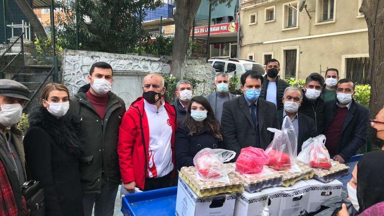 Yardım dağıtımında mahalle muhtarları ve esnafın yanı sıra CHP İl Başkan Yardımcısı Pelda Başak Tokan da hazır bulundu.