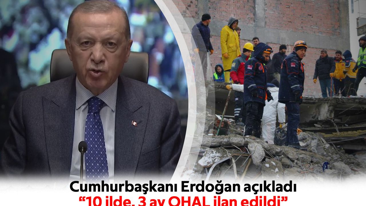 Cumhurbaşkanı Erdoğan, depreme maruz kalan 10 il hakkında 3 ay geçerli olmak üzere OHAL ilan edildiğini açıkladı. Erdoğan,“10 ilimizi kapsayacak, 3 ay sürecek kararla ilgili Cumhurbaşkanlığı ve Meclis süreçlerini hızla tamamlayacağız” diye konuştu.