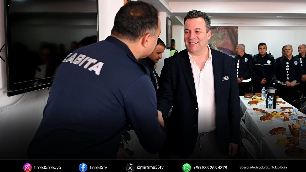 Başkan Vekili Tahsin Demirtaş güne Kuşadası Belediyesi Zabıta Müdürlüğü’nü ziyaret ederek başladı. Zabıta personeliyle birlikte kahvaltı yapan Başkan Vekili Demirtaş’a Kuşadası Belediye başkan yardımcıları da eşlik etti. Samimi bir atmosferde geçen buluşmada, belediye hizmetlerinin sahadaki önemi ve ekip çalışmasının değeri vurgulandı. Zabıta Müdürlüğü’nün kent genelindeki çalışmaları hakkında bilgi alan Başkan Vekili Tahsin Demirtaş, özveriyle görevlerini yapan personele teşekkür etti.