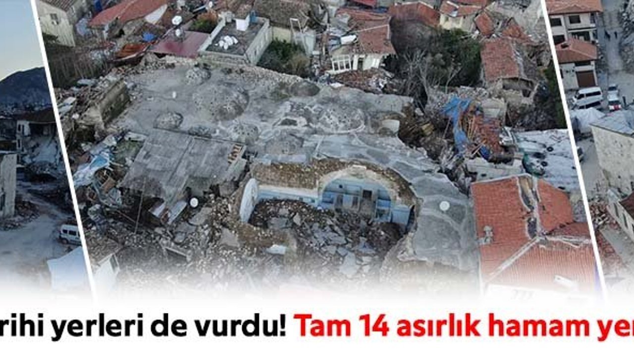 Tarihi 7’nci yüzyıla dayanan ve avlusunda da 19’uncu yüzyılda inşa edilen bir şadırvan bulunan cami, dron ile havadan görüntülendi. 14 asırlık caminin yakınında bulunan tarihi Yeni Hamam da depremde hasar gördü.