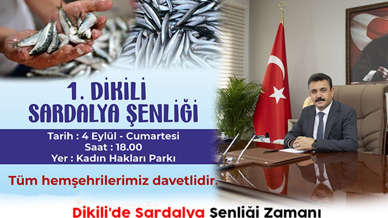 Dikili Belediyesi tarafından Kadın Hakları Parkı'nda düzenlenecek 1. Dikili Sardalya Şenliği 4 Eylül Cumartesi günü saat 18:00'da gerçekleşecek. Şenlikte vatandaşlara ücretsiz balık ikramında bulunulacak.