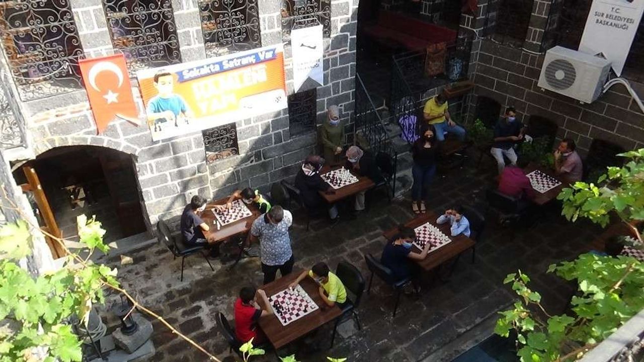Diyarbakır’da ’Maskeni Tak, Mesafeni Koru, Hamleni Yap’ sloganıyla 6’ncı Sokakta Satranç Var turnuvası başladı. Satranç sporuna teşvik etmek ve farkındalık oluşturmak için düzenlenen etkinlikte korona virüs nedeniyle maske ile sosyal mesafe kuralına uyan Diyarbakırlı gençlerde satranç oynamanın keyfini çıkardı.