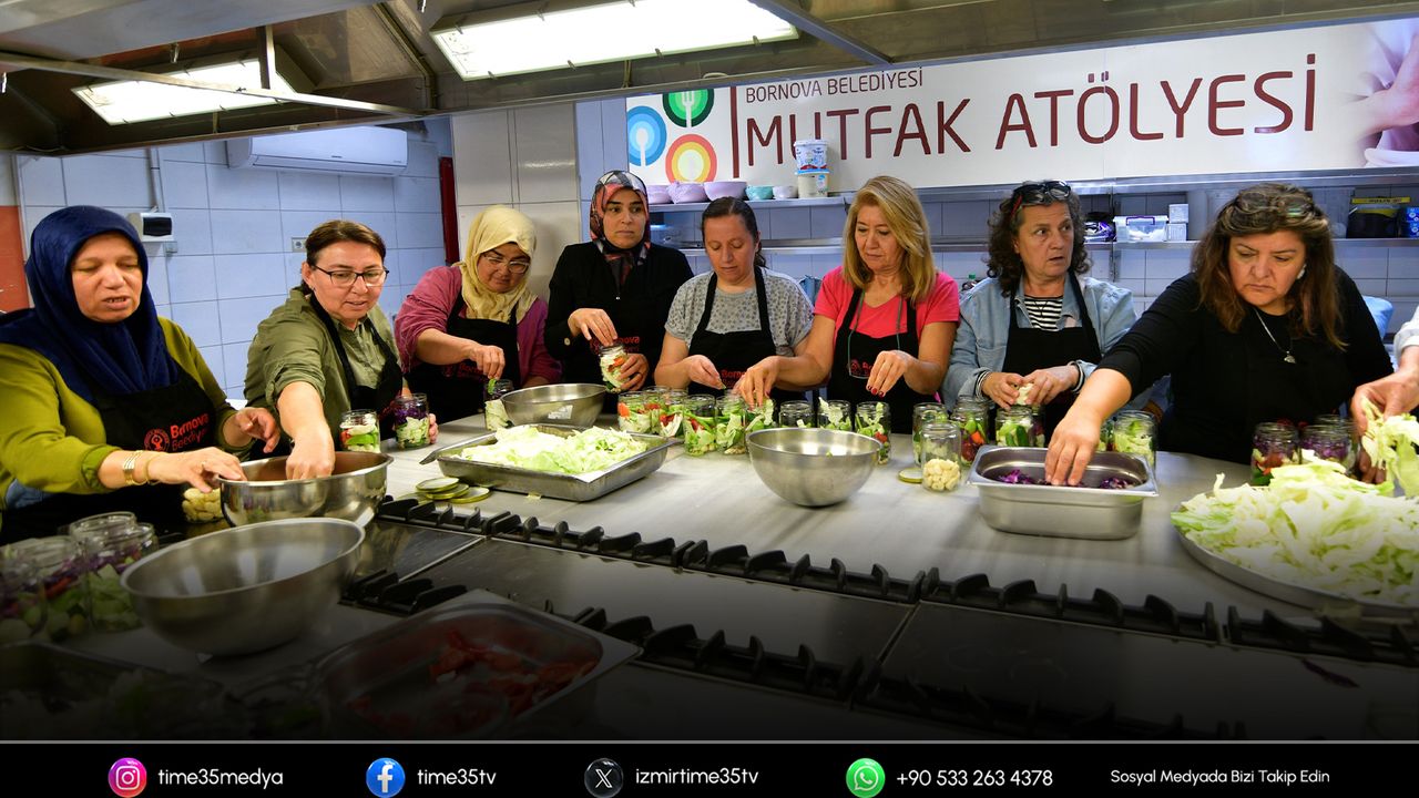 Bornova Belediyesi, sağlıklı ve doğal beslenmeyi teşvik etmek amacıyla yürüttüğü Sağlıklı Gıda Atölyelerine hız kesmeden devam ediyor. Bornova Belediyesi Tarımsal Hizmetler Müdürlüğü tarafından düzenlenen etkinlik kapsamında, Evka 3 Mutfak Atölyesi’nde bir araya gelen kadınlar, geleneksel yöntemlerle katkısız zeytin, turşu ve erişte yapımını öğrendi.