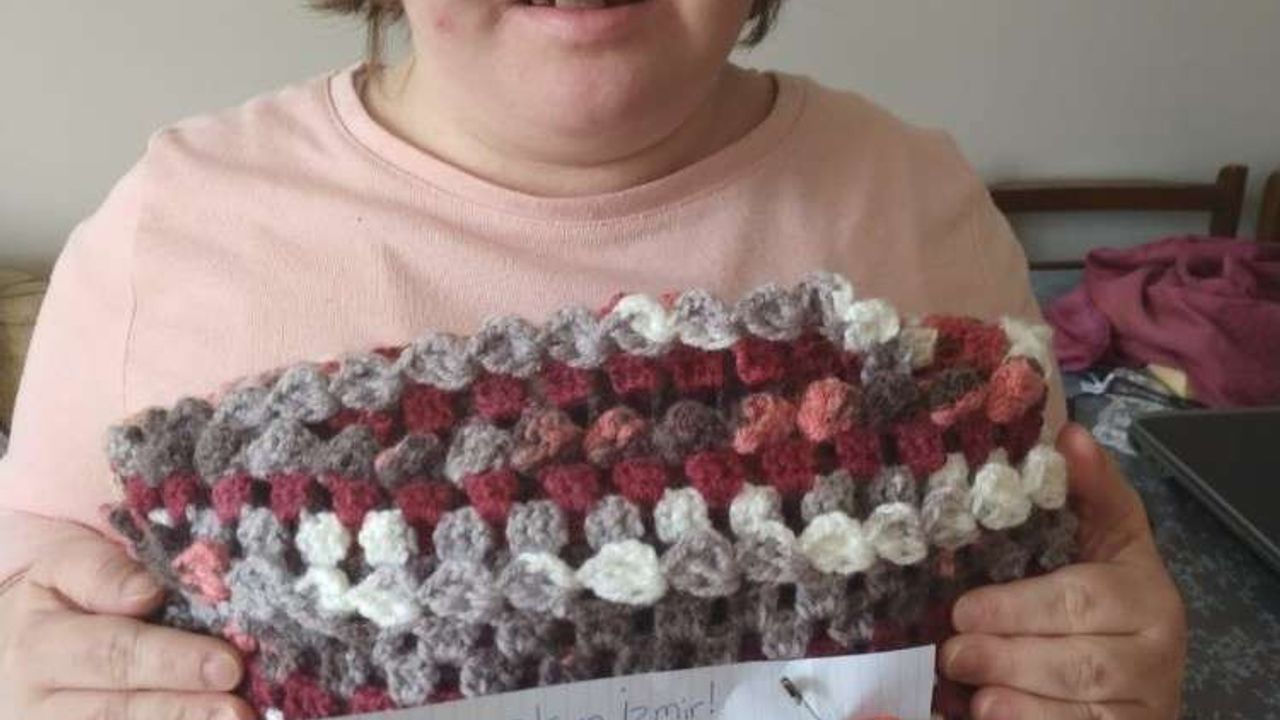 İzmit’te yaşayan down sendromlu Ceren Görgün, kendi elleriyle ördüğü battaniyeyi İzmir’deki deprem bölgesine göndermek için belediye yetkililerine teslim etti.
