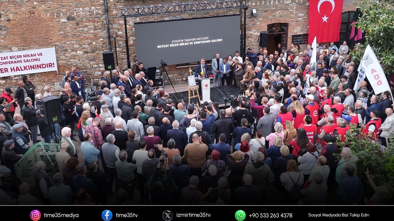 “Hayatını kaybeden evlatlarımızın ve öğretmenimizin kederli ailelerine ve eğitim camiamıza başsağlığı diliyorum. Mekânları cennet olsun. Konuşmama başlamadan önce, geçtiğimiz iki gün içerisinde Şanlıurfa ve Kahramanmaraş’ta meydana gelen, hepimizi derin bir yasa boğan olaylarda hayatını kaybeden öğretmen ve öğrencilerimize Allah’tan rahmet; kederli ailelerine ve eğitim camiamıza başsağlığı diliyorum. Mekânları cennet olsun. Bugün burada Efeler’in hafızasına, kültürel mirasına ve halkın öz malına sahip çıkmak için toplandık. Anlamlı mücadelemizde bizleri yalnız bırakmayan, Efeler halkının direniş hareketine destek veren, katılımlarıyla bizleri onurlandıran sizlere çok teşekkür ederim. Toplumun her kesiminden, görüş ya da yaşam tarzı farklılığı gözetmeden yüzlerce kişinin burada olması bizi hiç şaşırtmadı. Çünkü Nevzat Biçer Nikâh ve Konferans Salonu, bu kentin en önemli ortak değerlerinden birisidir. Aydın Vakıflar Bölge Müdürlüğü; yıllardır belediyemiz eliyle bir kültür yuvasına dönüştürülen bu tarihi yapıyı, "tescil" adı altında Ayşe Hanım Binti Mehmed Paşa Bin Derviş Vakfı üzerine geçirmiştir. Daha da vahimi; bu süreç, devlet ciddiyetine yakışmayacak bir gizlilikle yürütülmüştür. Belediyemize tek bir resmi bilgi verilmemiş; halkın malının nasıl el değiştirdiğini kurumlardan değil, bir haber sitesinden öğrenmek zorunda bırakılmışızdır.” dedi.