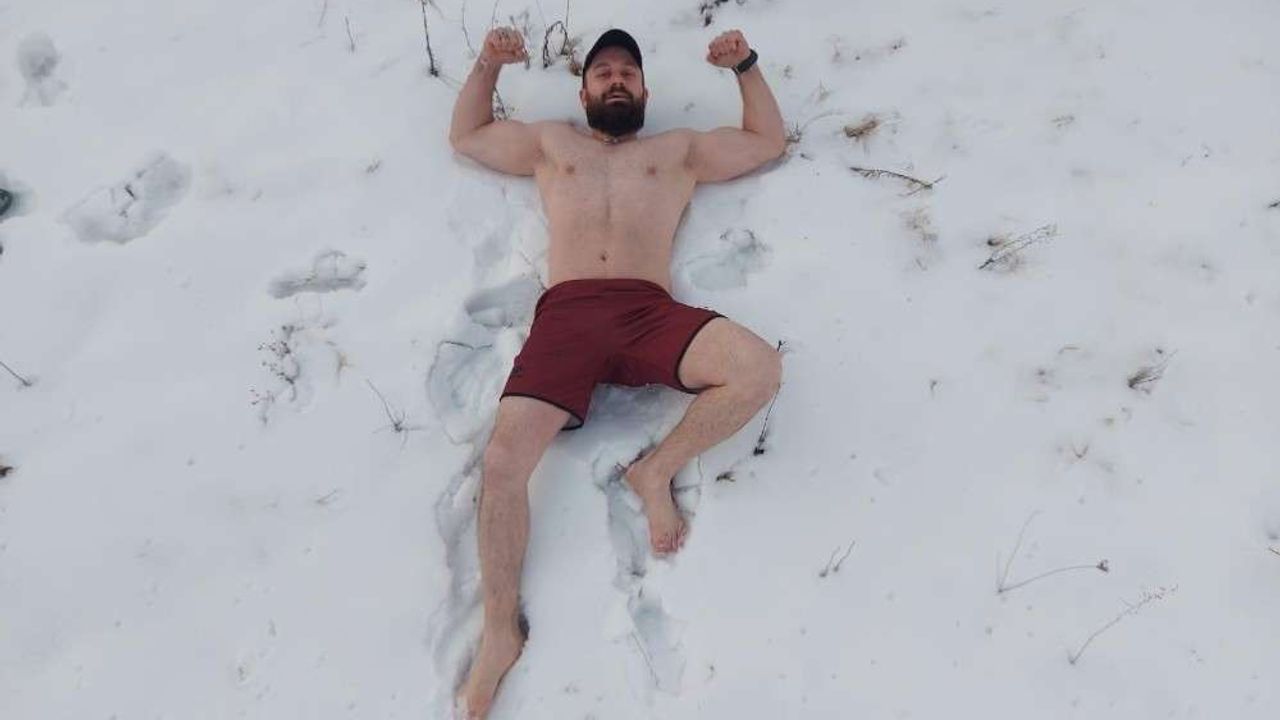 Çılgınlıkta sınır tanımadığını belirten Tayfun Demirtaş ”Daha önceden de birçok ilginç ve gizem dolu çekimlerim olmuştu. Geçtiğimiz günlerde kar yağışının ardından böyle bir çekim yapmaya karar verdim. Arkadaşlarımdan destek alarak eksi 15 derecede buz gibi havada soyunarak çıplak bir şekilde karların altına yattım. O şekilde 5 dakika kar altında kaldım ve vücudum bu durumdan hiçbir şekilde etkilenmedi. Her şey kafada bitiyor. Ben şu anda burasını yaz olarak düşünüyorum. Akşam üstü hava kararmaya yakın olunca bu denememi 5 dakika ile sınırlı tuttum. Daha uzun süreli de bu şekilde kar altında kalabilirim. Araştırmasının yaptım ve böyle bir denemenin Türkiye’de ilk defa olduğunu gördüm. Cesareti olan varsa her türlü düelloya bekliyorum” dedi.