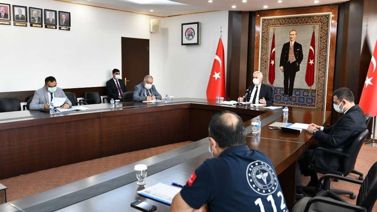 Toplantıda söz alan İl Sağlık Müdürü Dr. Mehmet Karakaya ise pandemi başındaki verilere göre 6 aylık süreçte karşılaşmayı planladığımız sayılara son 1.5 ayda ulaşıldığının altını çizerek alınan tedbirlerden asla taviz verilmemesini istedi.