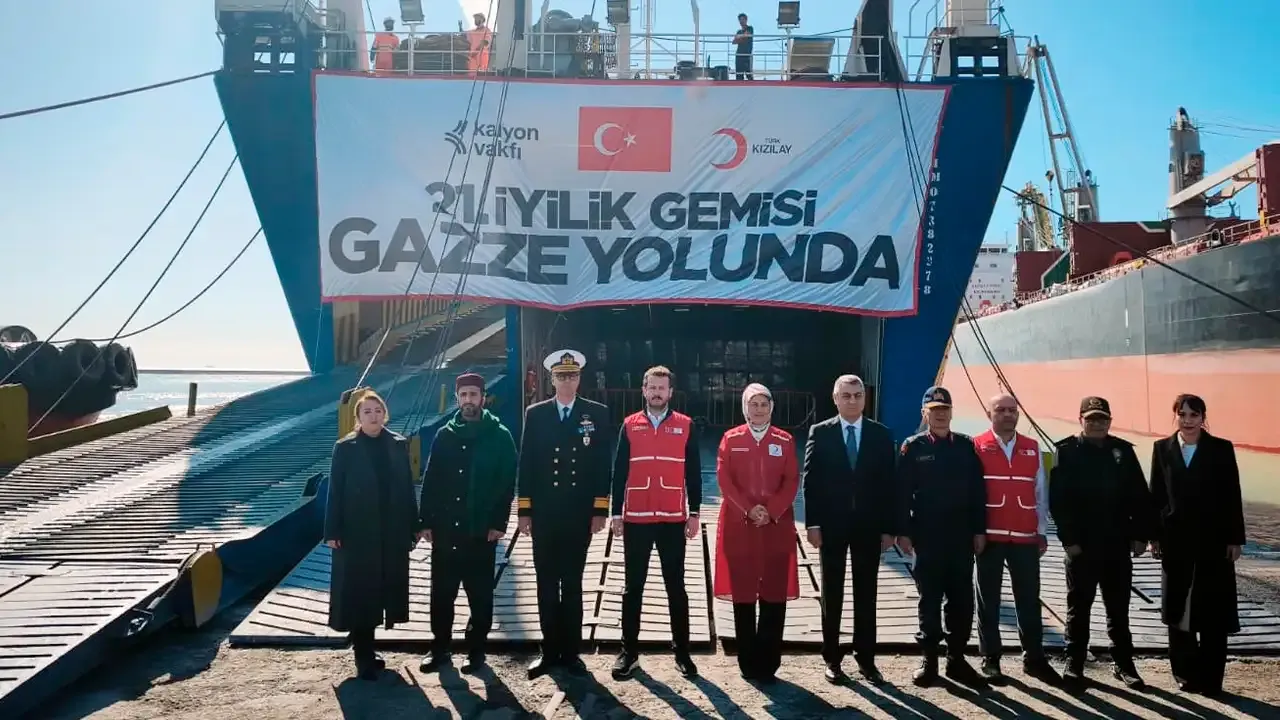 Türk Kızılay, Gazze’deki insani yardım çalışmalarını yoğunlukla sürdürüyor. 21’inci ve en büyük 'Gazze İyilik Gemisi', Mersin Limanı'ndan törenle uğurlandı. Programa Mersin Valisi Atilla Toros, Türk Kızılay Başkanı Prof. Dr. Fatma Meriç Yılmaz, Kızılay İl Başkanı Lütfi Parıltı ve gönüllüler katıldı.