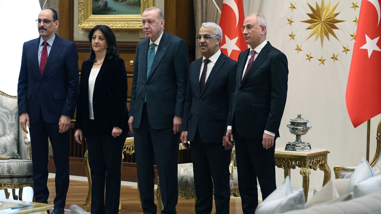 Cumhurbaşkanı Recep Tayyip Erdoğan, DEM Parti İmralı heyeti üyeleri TBMM Başkan Vekili ve Van Milletvekili Pervin Buldan ile Şanlıurfa Milletvekili Mithat Sancar'ı kabul etti.