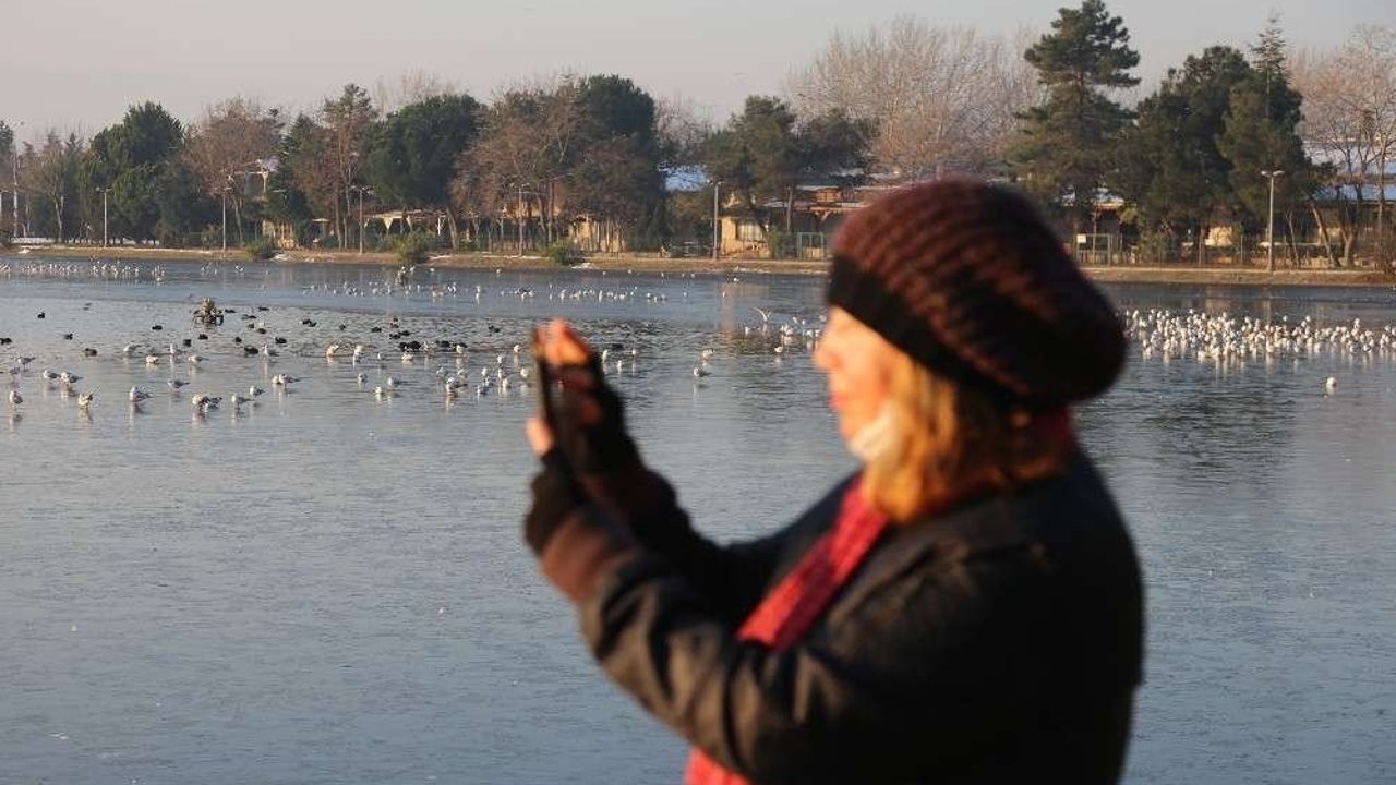 Kocaeli, gece saatlerinde etkili olan dondurucu soğuk sebebi ile buz kesti. Gece saatlerinde termometrelerin sıfırın altında 10 dereceyi gösterdiği İzmit ilçesinin kent merkezinde bulunan gölet, dondu. Sabah yürüyüşü için bölgeye gelen vatandaşlar, donan göleti cep telefonları ile görüntüledi. Gölette bulunan kuşlar ise buz üstünde yürüdü. Donan gölet havadan görüntülendi.